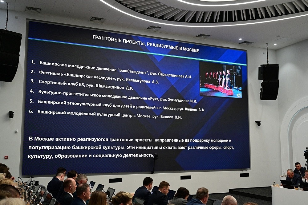 Главное, на что сейчас делают упор в представительстве, — создание широкой сети общественных организаций и творческих коллективов. Чтобы охватить ими как можно больше выходцев из республики. Сейчас таких «ячеек» 14, сфера интересов которых — от музыки и спорта до профессиональных семинаров и простого общения. Молодежи — особое внимание, недаром сейчас в Москве функционируют 27 башкирских землячеств при столичных вузах.