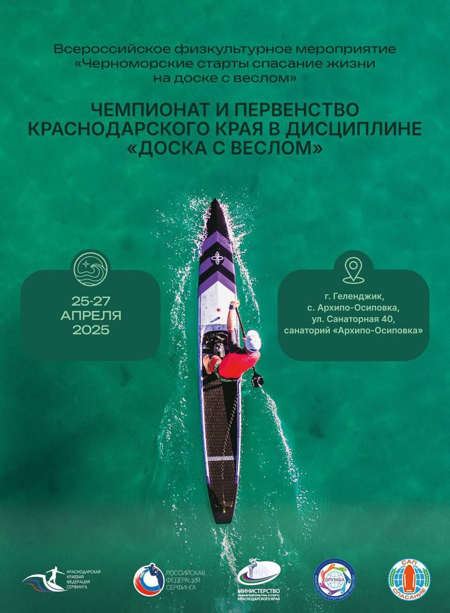 📣В Архипо-Осиповке пройдет Всероссийское физкультурное мероприятие «Черноморские старты спасание жизни на доске с веслом» а также Чемпионат и Первенство Краснодарского края по серфингу в дисциплине «доска с веслом». 📍Сроки и место проведения: с 25 по 27 апреля в Архипо-Осиповке, на территории санатория «Архипо-Осиповка». ❕Возрастные категории соревнований: Чемпионат - спортсмены от 18 лет и старше Первенство - с 10 до 19 лет Всероссийский фестиваль - от 8 лет и старше 🏆Для мужчин и женщин от 18 лет соревнования пройдут в следующих категориях: «СПОРТ» - «технический спринт» 200 м - «техническая гонка» 2250 м: 3 круга, 2 перебежки - «длинная дистанция - марафон» 8 км допускается использование надувных и жёстких досок длиной от 400 до 430 см; «ЛЮБИТЕЛИ» - «технический спринт» 200 м - «техническая гонка» 1500 м: 2 круга, 1 перебежка - «длинная дистанция - марафон» 4 км допускаются надувные доски не уже 76 сантиметров и не длиннее 381 см. 🏆Для юниоров и юниорок 15 - 18 лет соревно