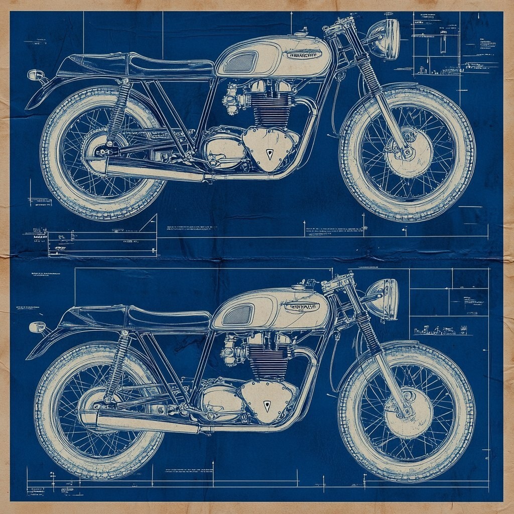 Создано на основе запроса: a set of blueprints for a triumph motorcycle with grid lines and annotations