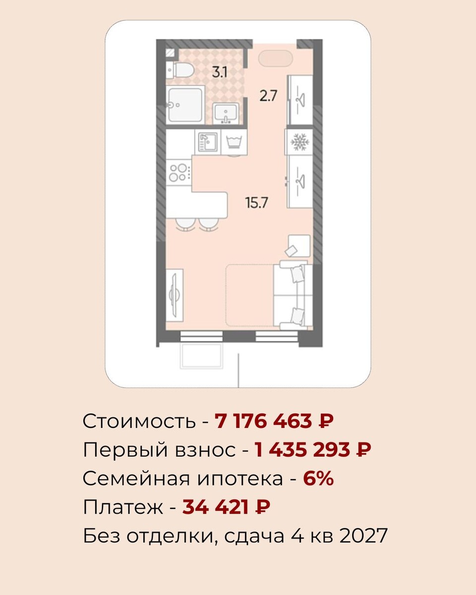 Госпрограммы по семейной ипотеке могут начать резко сворачивать. Уже запретили рефинансировать. Следом может вырасти первоначальный взнос и сократится количество одобренных заявок. Ставка 6% — в апреле пока ещё дают! И я нашла 6 квартир, которые подходят под семейную ипотеку: — Первоначальный взнос от 1,4 млн — Ежемесячный платёж от 34 000 — Планировки уже в карусели Ставки улетают, хорошие квартиры — тем более. Смотрите, листайте, пишите — пока они есть! https://clck.ru/3Ga84x