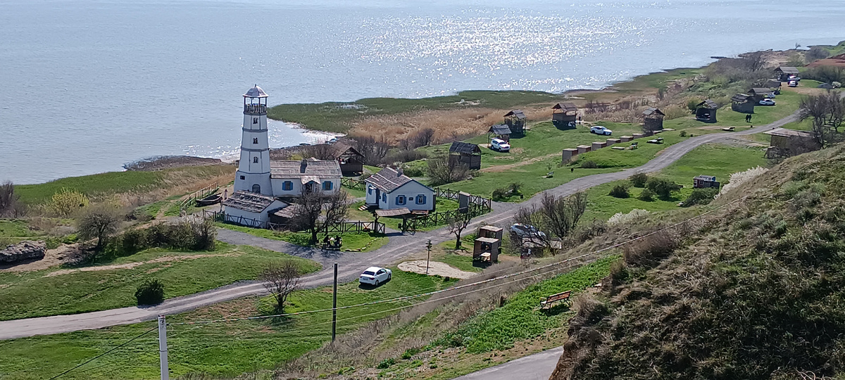 Очень интересно, что маяк, который находится внизу, возле самой воды, виден из любой точки наверху: