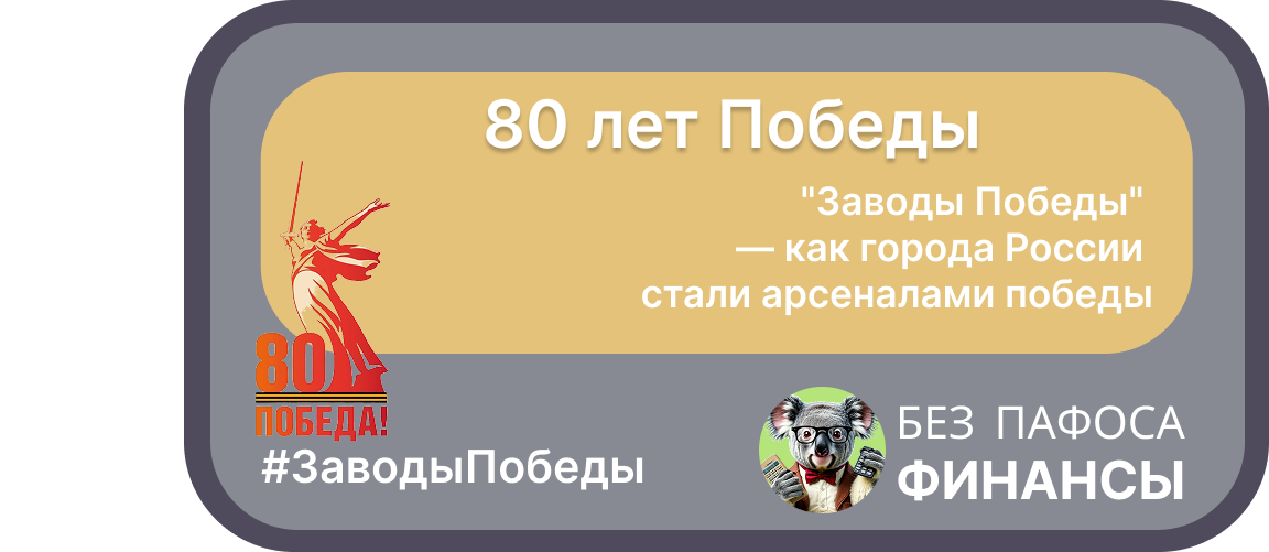 В этом году мы отмечаем 80 лет с момента Победы в Великой Отечественной войне. В честь этого события мы запускаем проект "Заводы Победы", посвященный основным производствам военной продукции в те героические годы. В серии из 5 статей мы расскажем о 5 городах, которые сыграли ключевую роль в обеспечении фронта вооружением и снаряжением. В годы войны многие города России превратились в крупные военно-промышленные центры. Вот 5 городов, которые внесли значительный вклад в победу: В преддверии 9 мая мы будем публиковать статьи о каждом из этих городов, рассказывая о их роли в годы войны и о том, как они помогли обеспечить победу. Следите за нашими публикациями и узнайте больше об истории нашей страны! Викторина: Какой из этих городов был основным производителем танков Т-34? Ответ оставьте в комментариях! Вопрос для вовлечения: Какие истории о Великой Отечественной войне вы знаете из семейных рассказов? Поделитесь в комментариях! Совет от Коала-финансиста Альберта: "Помните, что финансова