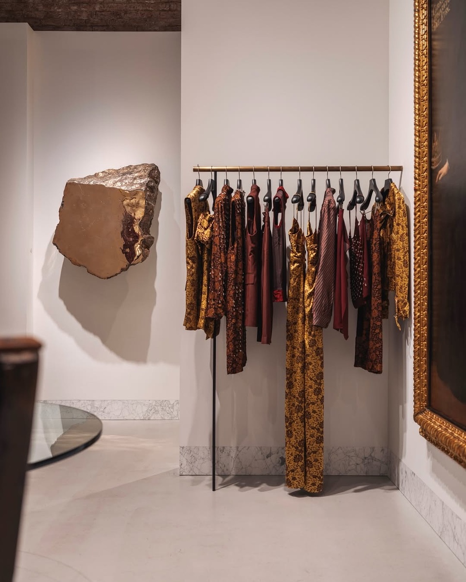Первый отдельный бутик бельгийского дизайнера Dries Van Noten в Нью-Йорке стал не просто новой точкой на карте моды, а настоящим арт-объектом. Пространство, расположенное в историческом здании на Манхэттене, объединило изысканность коллекций Van Noten с монументальными работами скульптора Bена Стормса (Ben Storms). Результат — симбиоз текстиля, металла и света, где каждая деталь рассказывает историю о балансе между хрупкостью и силой. Почему это событие важно? Dries Van Noten, известный своими смелыми принтами и философским подходом к моде, впервые открыл монобрендовый магазин в Нью-Йорке. Это не просто коммерческий шаг, а жест в сторону искусства: дизайнер пригласил бельгийского художника Бена Стормса, чьи работы стали смысловым центром пространства. «Я хотел создать место, где одежда становится частью инсталляции, а не просто товаром на вешалке», — объясняет Dries. Интерьер: Металл, свет и текстиль Пространство магазина напоминает лабораторию алхимика, где материи трансформирую