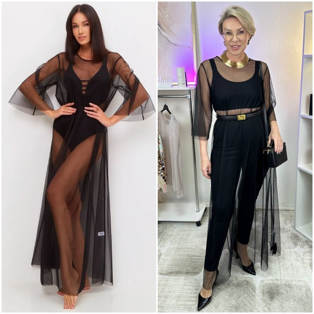 Здравствуйте, дорогие читатели! Меня зовут Ирина, я - стилист, и на этом канале показываю одежду и аксессуары с Wildberries такими, как они есть, то есть, из серии "ожидание/реальность". Мои параметры: рост 169 см, вес 67 кг, 94-74-100 ✅Основной канал: Стильно - не значит дорого! Ставьте лайк в поддержку канала, и давайте смотреть на мою сегодняшнюю покупку. Не так давно я заказала себе на ВБ стильное платье-сетку, которая подойдет не только для нарядных и повседневных образов, но и в качестве накидки на пляж. То бишь, вещь невероятно универсальная, добавляющая градус "нарядности" и стиля в ваши образы и отлично сочетающаяся со многими базовыми вещами. Прозрачность сейчас на пике моды, и я не советую вам бояться ее носить в любом возрасте! Помимо красоты, это платье еще и очень комфортное в носке. Есть два размера: 42-50 и 52-60. Ну а если вы не решаетесь носить мини и прозрачность, то рекомендую вам попробовать соединить эти два тренда. При правильной стилизации будете выглядеть потр