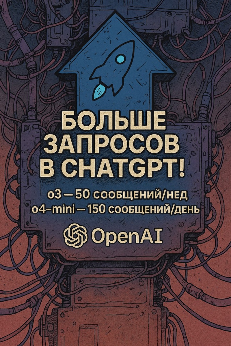 Новые лимиты на o-серии в ChatGPT OpenAI пересмотрела квоты и расширила лимиты на передовые модели для платных пользователей. 🔹 ChatGPT Plus / Team / Enterprise: o3 — 50 сообщений в неделю o4-mini — 150 сообщений в день o4-mini-high — 50 сообщений в день 🔹 ChatGPT Pro Почти безлимитный доступ к o3, o4-mini и GPT-4o 💡 Что ещё важно В ближайшие недели обещают o3-pro с полноценной поддержкой всех инструментов. Пока что Pro-пользователи могут пользоваться o1-pro. upd: Лимиты еще раз подняли: С учетной записью ChatGPT Plus, Team или Enterprise вы получаете доступ к 100 сообщениям в неделю с o3, 300 сообщениям в день с o4-mini и 100 сообщениям в день с o4-mini-high.