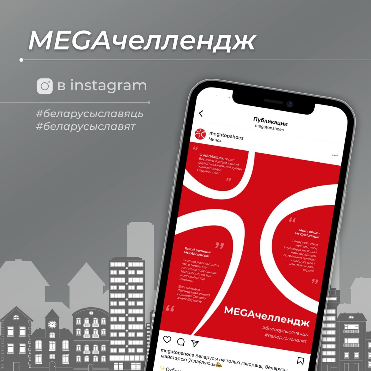 📣MEGAчелендж У нашым інстаграм стартаваў творчы конкурс, прысвечаны родным вашаму сэрцу месцам🧡 Пераходзьце па спасылцы, расказвайце ў каментарах пра свой MEGАгорад ці вёску і атрымлівайце магчымасць выйграць гадавы запас абутку на суму 1000 BYN! ➡️MEGATOP #беларусыславяць #белорусыславят