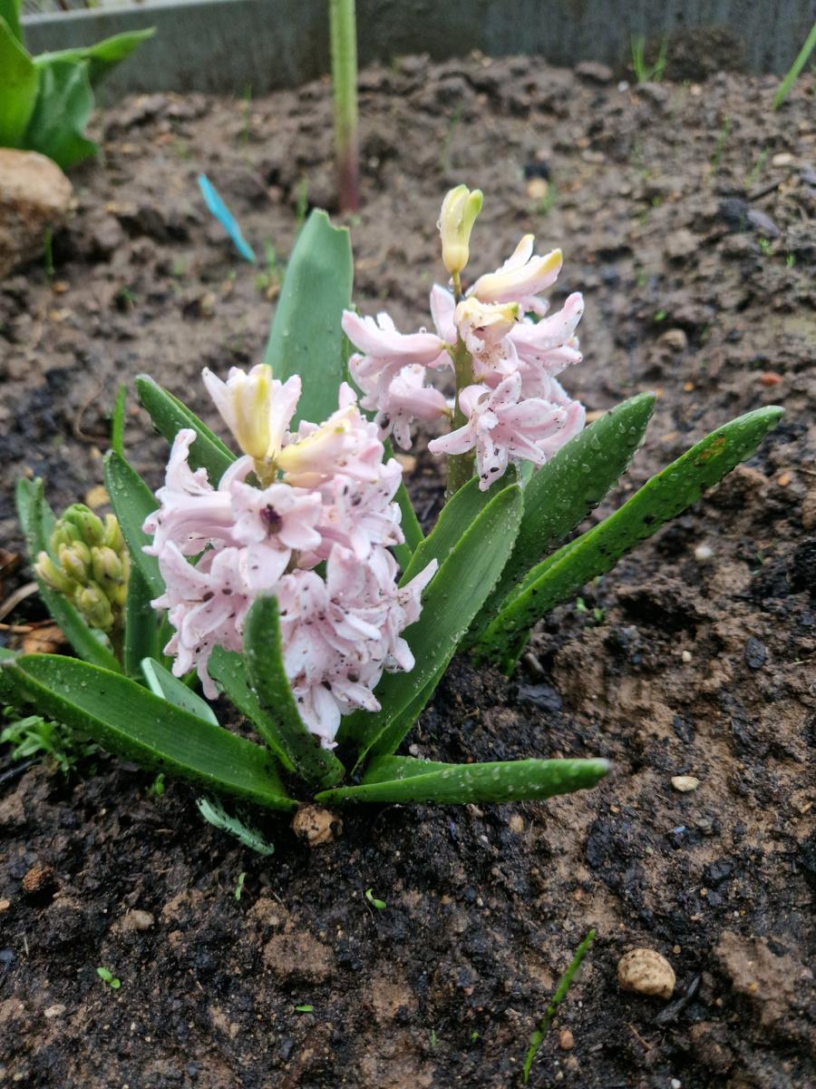 Еще вчера их не было. Да и утром, я как-то не заметила. Хотя, было столько дел, что могла просто не обратить внимания. А днем, опаньки, то тут, то там, на клумбах яркие пятнышки. Расцвели гиацинты. В то, что они могут расцвести почти мгновенно, верю. Не далее, как сегодня утром фотографировала цветочные почки черешни, а после обеда уже обнаружила цветочки. Гиацинты начали у меня появляться не так давно. Пока на грядках их всего 15. А это значит, появляться они начали примерно 3 года назад. Откуда цифры? Да просто среди этих парфюмерно-пахучих красавцев нет ни одного покупного в виде луковиц. Все были подарены сыном цветущими в горшочках на 8 марта вместо традиционного букета. Дарились цветочки именно с тем, чтобы потом переселить их в сад. Что я и делала. Но, подарки этого года я решила не закапывать в землю. Они у меня благополучно дожили в горшках до усыхания ботвы и отправились на летнюю спячку. Я еще ни разу не выращивала гиацинты в горшочках в конце зимы. Хочу попробовать. А з