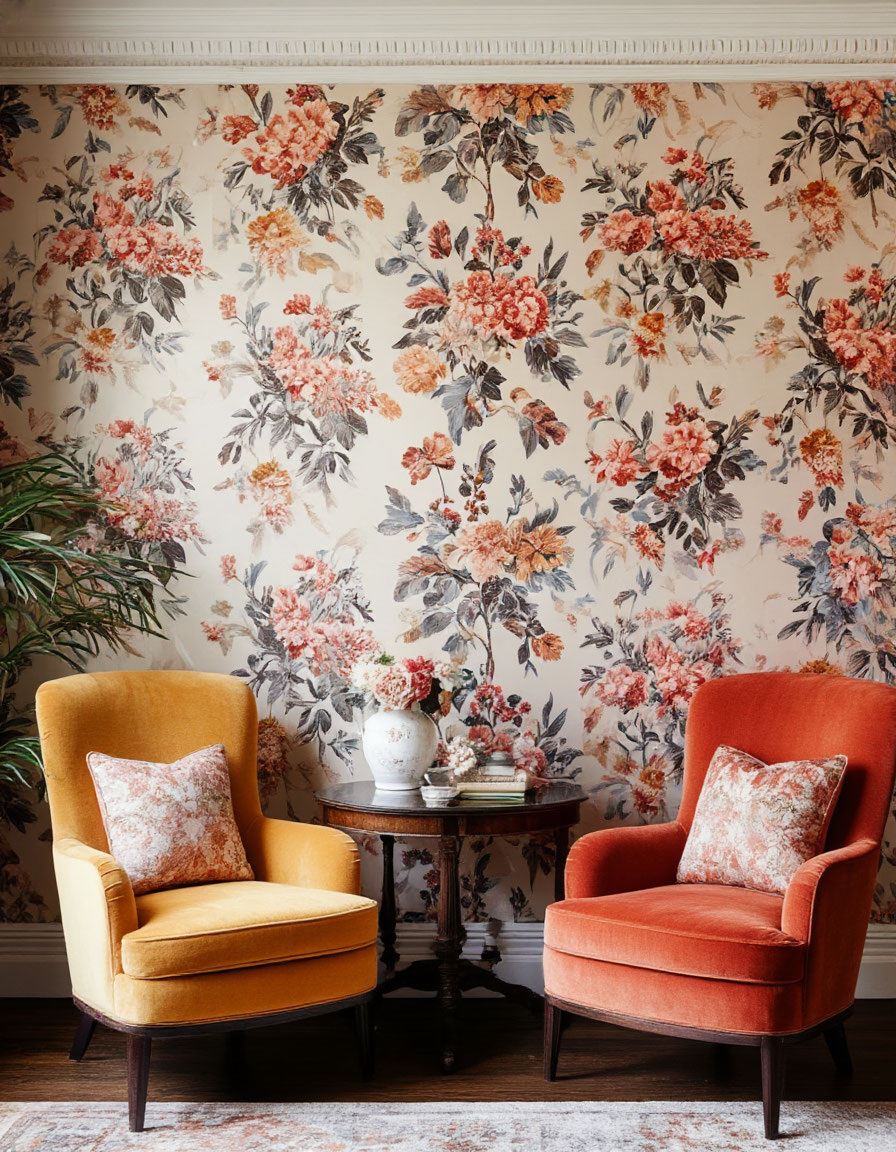 - Классический стиль: Подойдут обои с дамасским узором, полосами или цветочным орнаментом в пастельных тонах.