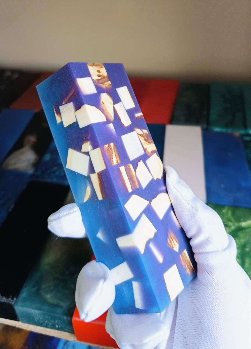 Как вам такой брусок - рог лося в акриле😃 Этот красавец на фото — будущая рукоять, которая привлечёт внимание с первого взгляда. Внутри — фрагменты настоящего рога лося. Снаружи — прочный акрил яркого насыщенного цвета. Красиво, надёжно, брутально👍 Зачем такая рукоять? • Не боится влаги и перепадов температур. • Не скользит в руке. • Идеальна для подарочного ножа или просто любимого инструмента. Подходит для ножей любых форм и задач — от охоты до кухни. Поставим на любую нашу модель! Хотите из него рукоять? Пишите — всё покажем, расскажем и обсудим😉