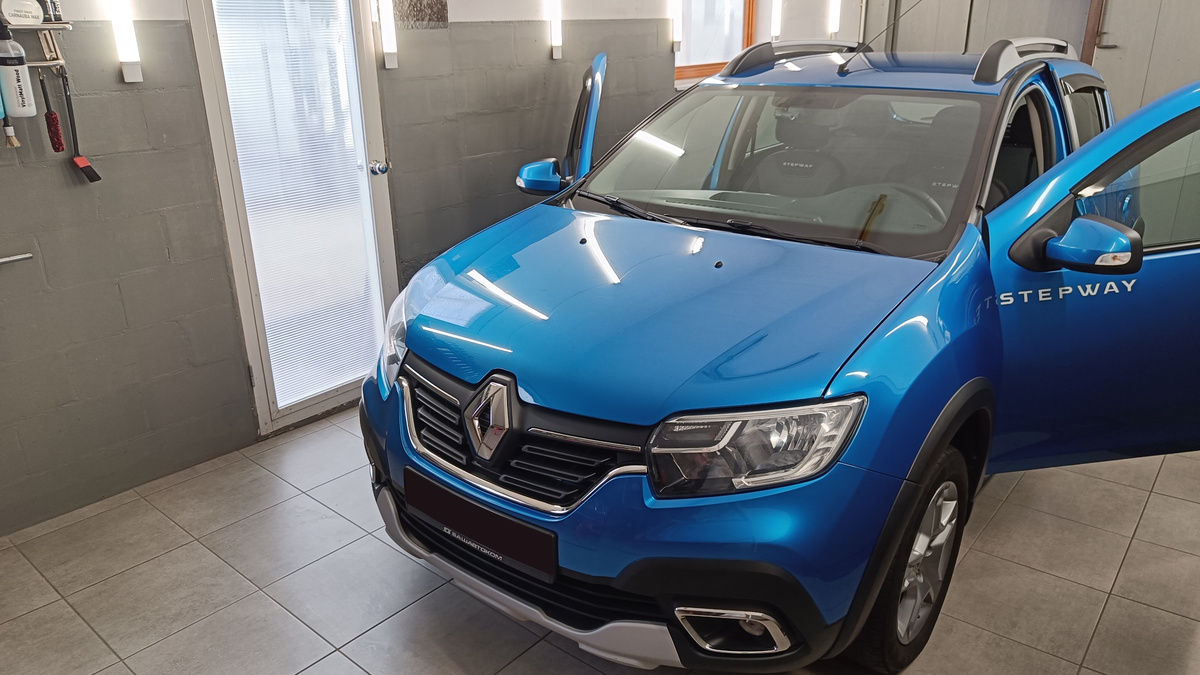 Сандеро 4 года, он пробежал 56 с небольшим тысяч километров. Машина обслуживает семью и выглядит как машина, обслуживающая семью (внезапно!). Никаких сверхзагрязнений, но и о стерильности говорить не приходится. Просто среднестатистическое (на мой взгляд) состояние, которое можно привести к околоидеальному.