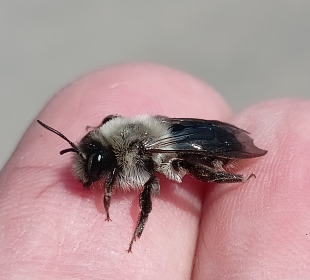 Одним из интересных и легко узнаваемых видов Андрен, или Земляных Пчёл, является Сероспинная Пчела-Шахтёр. Это ранневесенняя пчёлка, не более 15 миллиметров в длину, с затемнёнными крыльями, гладким чёрным брюшком и густой серой шубкой на груди. От Пепельной Пчелы её не сложно отличить по отсутствию чёрной полоски на спинке. На лбу у самок хорошо заметна полоска из чёрных волосков, а на голени задних лапок - из белых. Участки из белых волосков у Сероспинной Пчелы есть по бокам брюшка. Появляется эта пчёлка тогда, когда начинают распускаться цветки Ивы. Именно на цветочной пыльце всех видов Ив и специализируется Сероспинная Пчела. Как и другие Земляные пчёлы, самка делает гнездовую норку. Широкий центральный ход опускается вертикально вниз до 60 сантиметров. На конце, в разных направлениях от него, отходят четыре шестисантиметровых горизонтальных боковых хода. Каждый из них заканчивается камерой, куда пчела приносит пищу для своей будущей личинки - смесь из нектара и пыльцы. Когда п