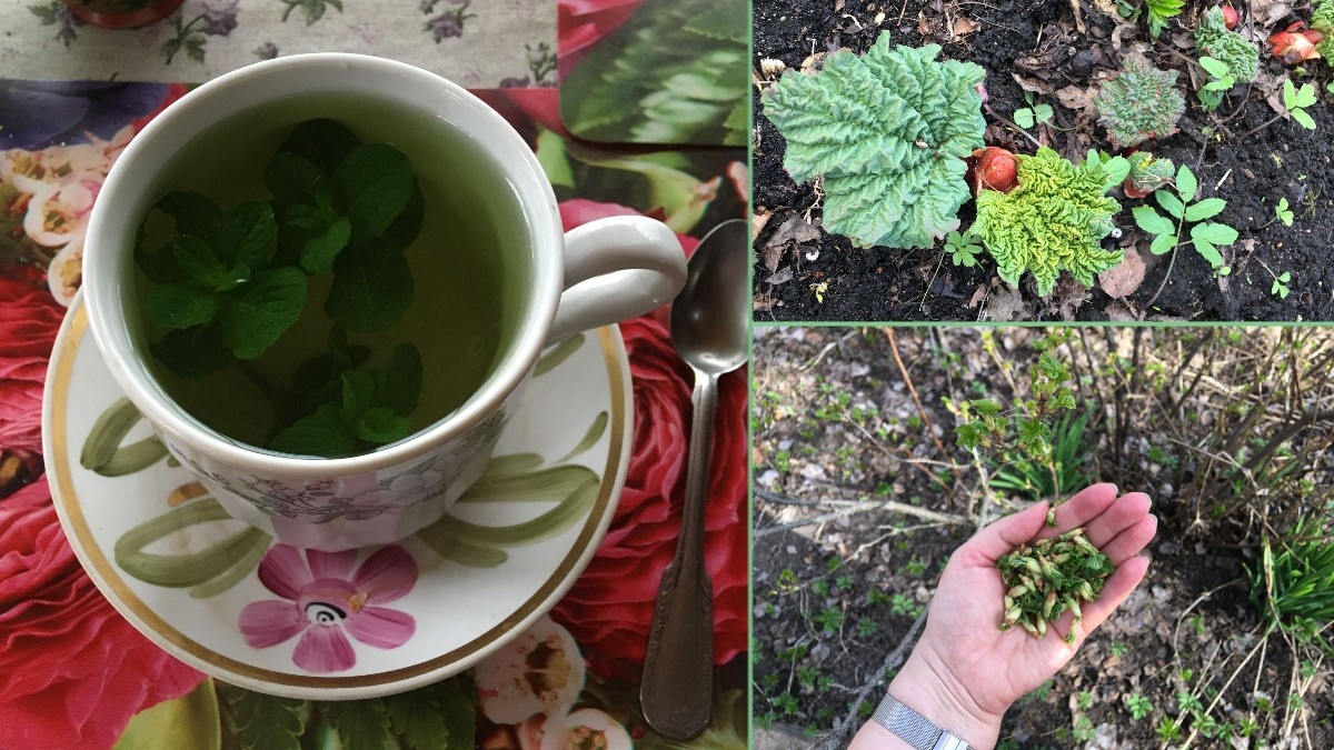 Какие деликатесы можно найти на даче в Подмосковье после долгой зимы? Рассказываю про 3 весенних «чая», которым всегда радуюсь в мае, а иногда уже в апреле. Ранняя мята Мяту я вообще очень люблю. Развожу её на даче, холю и лелею несколько видов. Среди них есть ранний сорт мяты, садовый, который уже в конце апреля даёт всходы достаточного для заварки размера. Просто кладу в любимую чашку 3-4 веточки мяты, заливаю кипятком, даю немного постоять… и наслаждаюсь! Ревень Это растение редко можно встретить на дачах Подмосковья, а жаль. Очень вкусны черешки его листьев в компотах, варенье, начинке для пирогов. Весной я едва могу дождаться, когда листья поднимутся над землёй, черешки их подрастут. Низко срезаю лист, очищаю черешок от верхней тонкой кожицы, нарезаю поперёк кусочками толщиной 3-5 мм, завариваю кипятком в большой чашке с небольшим добавлением сахара. Очень вкусно! Весенний лист чёрной смородины Молодые листья чёрной смородины дают при заваривании сильный аромат и приятный вкус. Я
