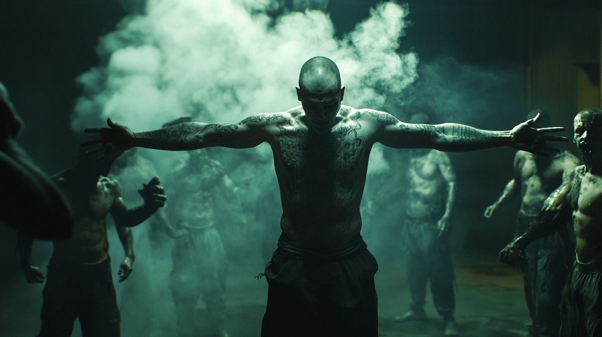 Создано на основе запроса: Russian Bravda boss, body covered in prison tattoos, in ritual pose, surrounded by his soldiers, in smoke-filled garage at night, in the style of David Fincher, horror, smoke --- Автоперевод: Русский босс Брэвды, тело, покрытое тюремными татуировками, в ритуальной позе, окруженное его солдатами, в гараже, наполненном дымом ночью, в стиле Дэвида Финчера, ужаса, дыма Как тебе этот вариант? 🤔 https://dzen.ru/id/65c0c65c86e4f837c27b24d7 #ИИ #AI #нейросеть #midjourney #art