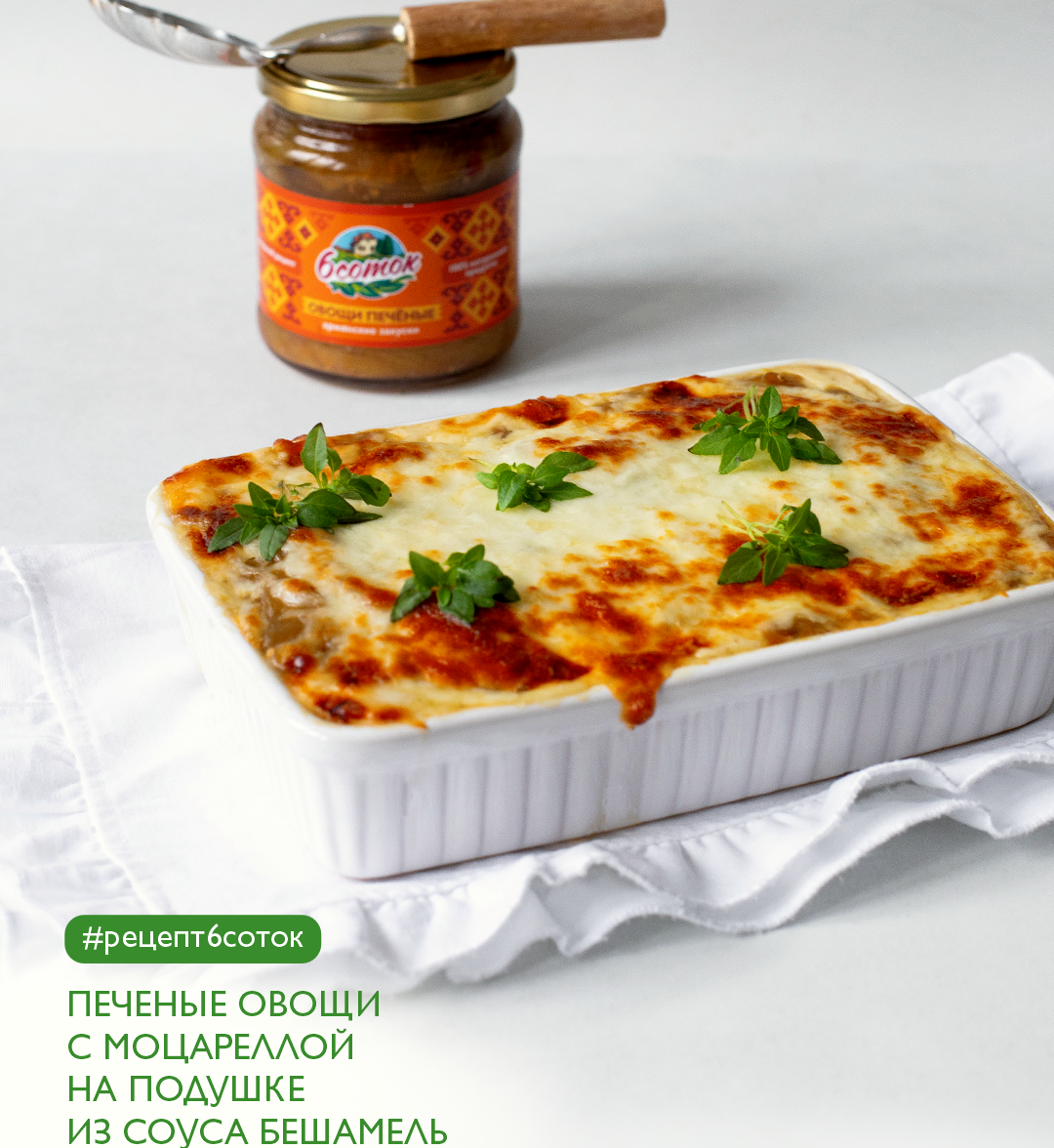 Изысканное сочетание печеных овощей «6 соток», нежной моцареллы и сливочного соуса бешамель не оставит вас равнодушными! 😉