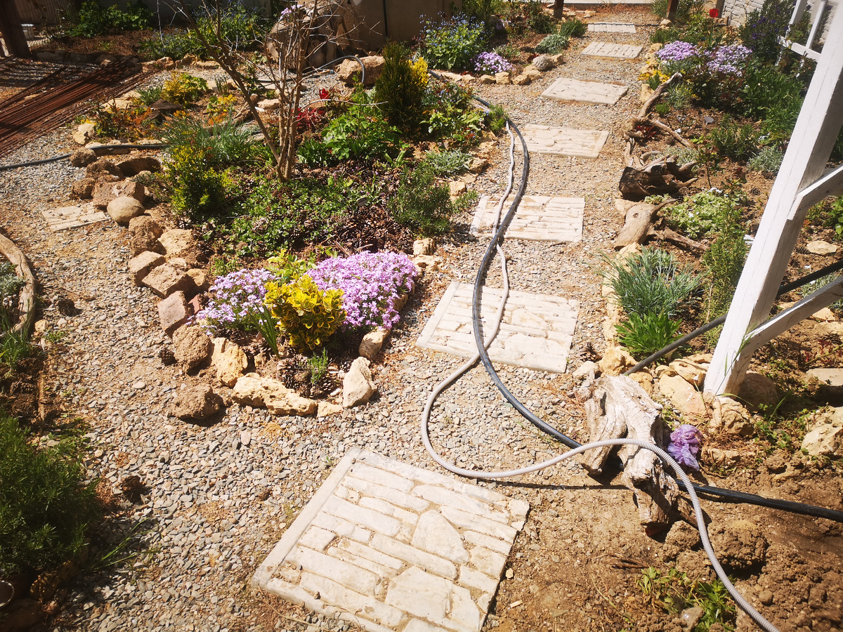 Я сегодня по мере возможностей наводила порядок во дворике после сумасшедшей прошлой недели: закопала шланг от колодца и гофру, отмыла дорожку от грязи и сделала небольшую клумбу