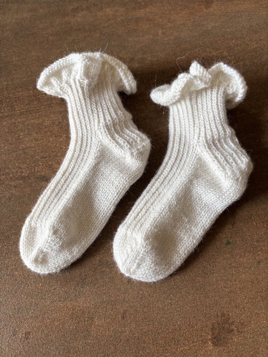 В этой статье вы найдете описание вязания носочков и два варианта вязания самих рюш.