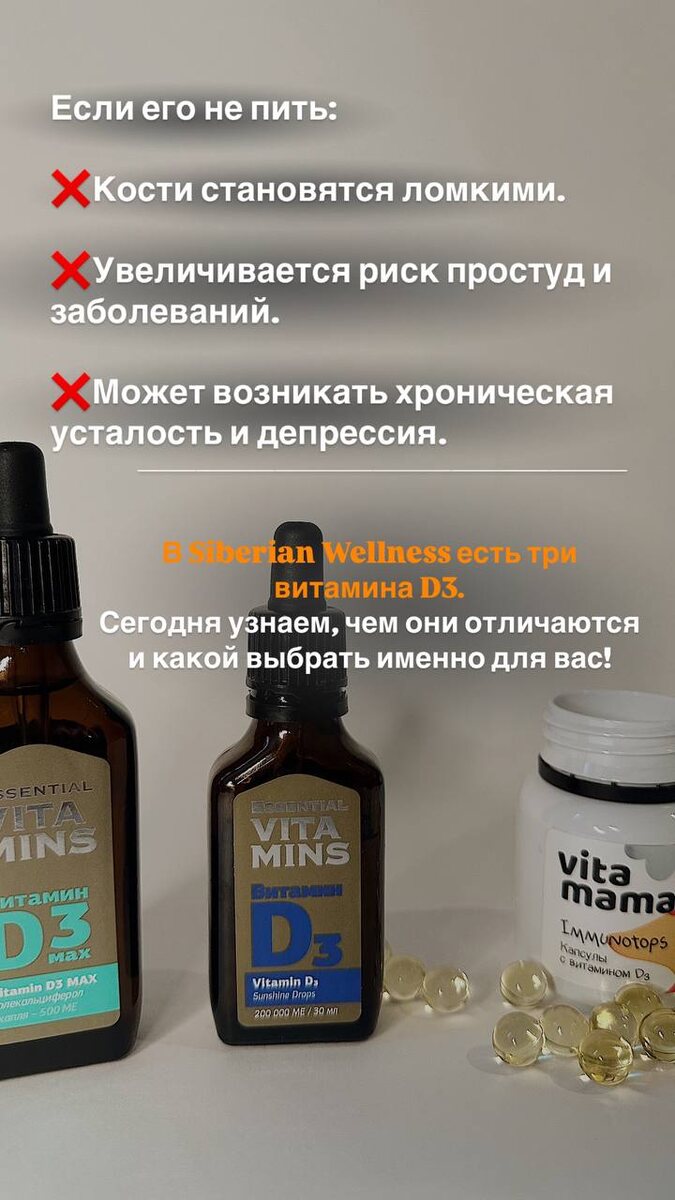 ✅В Siberian Wellness есть три вида витамина D, и мы разберём, какой из них подойдёт именно вам и вашей семье.