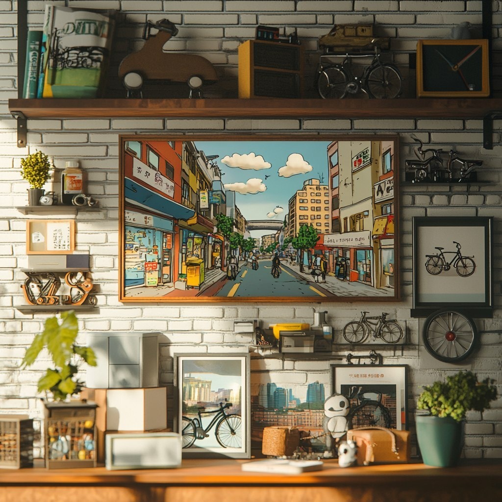 Создано на основе запроса: MS Teams type background, include wall art depicting a person commuting on a bicycle, a different picture of Seoul Korea and another picture of a Soft Shelled Turtle. Include tidy shelves in the background with a few random bicycle parts. --- Автоперевод: MS Teams Type Faine, включают в себя искусство Wall, изображающее человека, путешествующего на велосипеде, другую картину Сеульской Кореи и еще одну картину мягкой черепахи. Интересно вышло? 🤔 https://dzen.ru/id/65c0c65c86e4f837c27b24d7 #ИИ #AI #нейросеть #midjourney #art