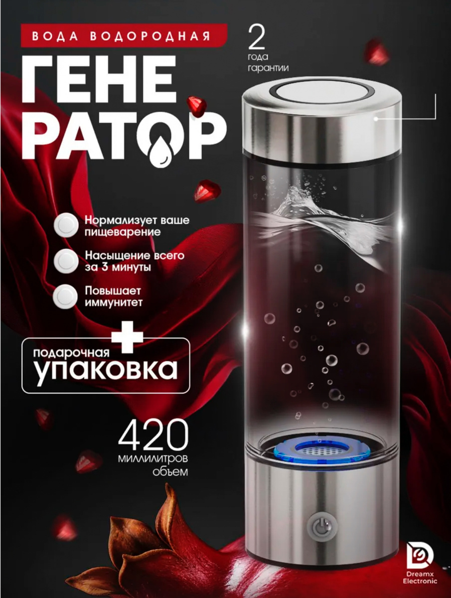Артикул ВБ: 18662853 Сегодня на слуху — водородная вода. Кто-то уже пьёт её каждый день и утверждает, что чувствует себя лучше, кто-то с недоверием пролистывает рекламу, а кто-то просто не понимает, зачем обычной воде "водород добавлять". Давайте разберёмся — кому и зачем может пригодиться генератор водородной воды. Свободные радикалы — это активные молекулы, которые повреждают клетки и ускоряют старение. Водородная вода содержит молекулярный водород (H₂), который действует как антиоксидант — связывает радикалы и помогает организму быстрее восстанавливаться. 📌 Польза: После тренировок в теле накапливаются продукты окисления, которые могут вызывать воспаление и усталость. Молекулярный водород помогает быстрее выводить эти продукты и снижать нагрузку на организм. 📌 Польза: Постоянная усталость, "туман в голове", кофе по 5 раз в день — знакомо? Регулярное употребление водородной воды помогает повысить концентрацию, снять стресс и даже улучшить качество сна. 📌 Польза: Водородная вода