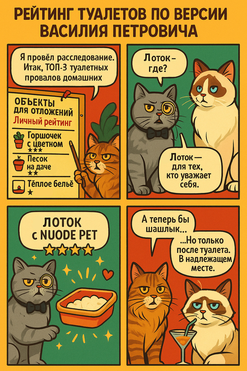 Или уже сделал. А теперь честно: сколько раз вы находили “подарки” в не самых подходящих местах? Плед. Цветочный горшок. Даже кухонная раковина. Ваши эмоции — от "почему?!" до "за что?!" А теперь я, Василий Петрович, расскажу вам правду. Кот не мстит. Кот делает выбор. И да, это единственный канал, который ведут коты, по этому мы точно знаем правду. Причина проста: мы не будем ходить туда, где нам не нравится. Ты человек. Ты можешь стиснуть зубы, потерпеть, “ну норм”.