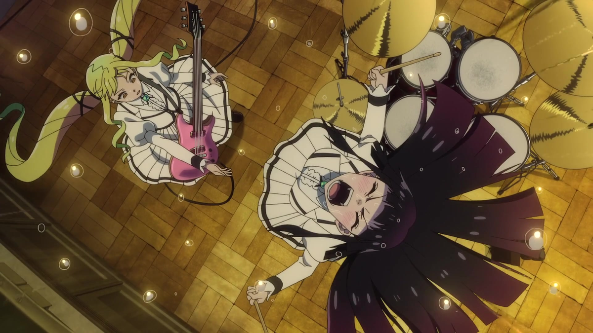 Я смотрю, рокерские анимешки последние годы набирают популярность. И, что важно, в них ещё и весьма приличное музло. Другое дело, что обстоятельства иногда принимают странный оборот. Как, например, здесь. Главная героиня, Лилиса, носит высокочтимую фамилию Судзуномия и учится в элитной школе в окружении юных леди из не менее элитных семей. Но это всё лишь потому, что её мать вышла замуж за, я так понимаю, главу Судзуномий — а раньше они были совершенно обычными людьми. И теперь молодая Лилиса лезет из кожи вон, чтобы преподносить себя в качестве идеальной представительницы высокого сословия. Всё ради того, чтобы не создавать проблем любимой матери. Между прочим, у нашей героини отменно получается держать марку, сверстницы ей восхищаются. Пока случай не сводит её с Отохой Куроганэ (здесь фамилия в конце), которая даже более известная в местных кругах. Точнее, сводит не просто с ней, а с её секретным хобби — исполнением рок-музыки на барабанах. Отоха берёт Лилису на слабо и провоцирует н