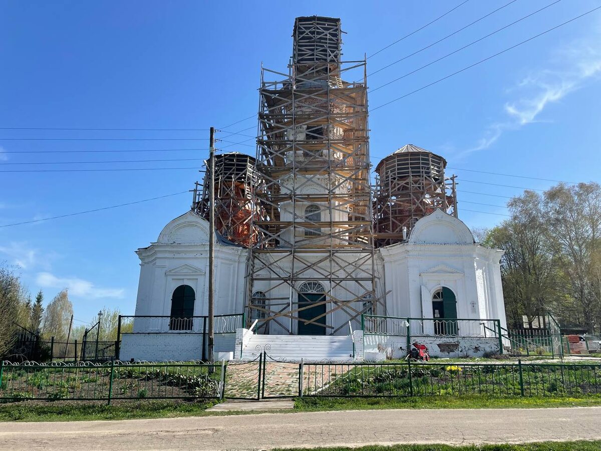 Храм в честь Успения Божией Матери села Бортсурманы. Таким я увидел его в объективе фотоаппарата при очередном выезде на замер. На данный момент ведутся работы по очистке фасадов от старого покрытия, с последующей штукатуркой и окрашиванием стен. Было солнечно, ветрено и волнительно. Находясь на лесах, практически под куполом, ощущается величие храма, которое с каждой минутой усиливается от громкого соборного служения паломников. Замер от 22.04.2025.