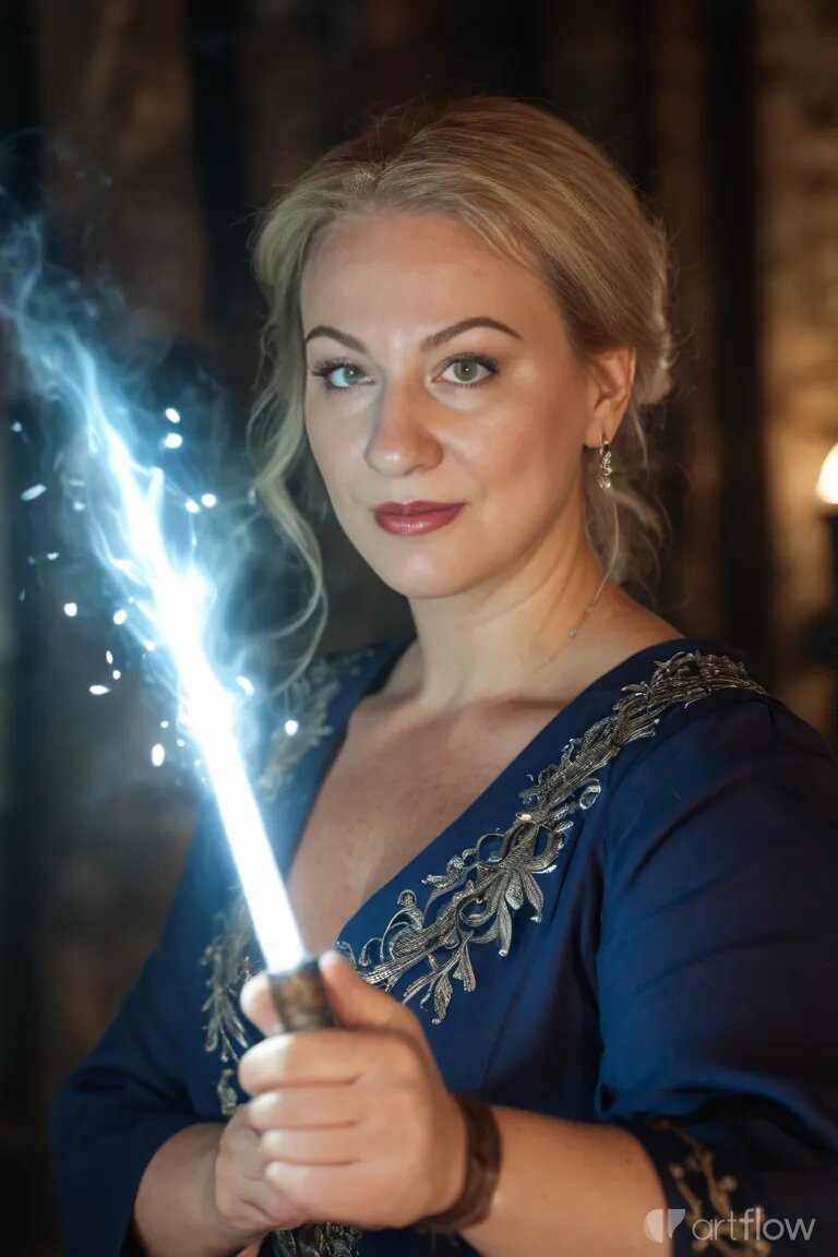 Первая попытка была, скажем так… из области научной фантастики. Лицо вроде моё — но слишком идеальное и лет на 10 моложе. Всё остальное — как будто от другой реальности. Так, побаловаться. Я повертела картинки, посмеялась и забросила идею. На долго.