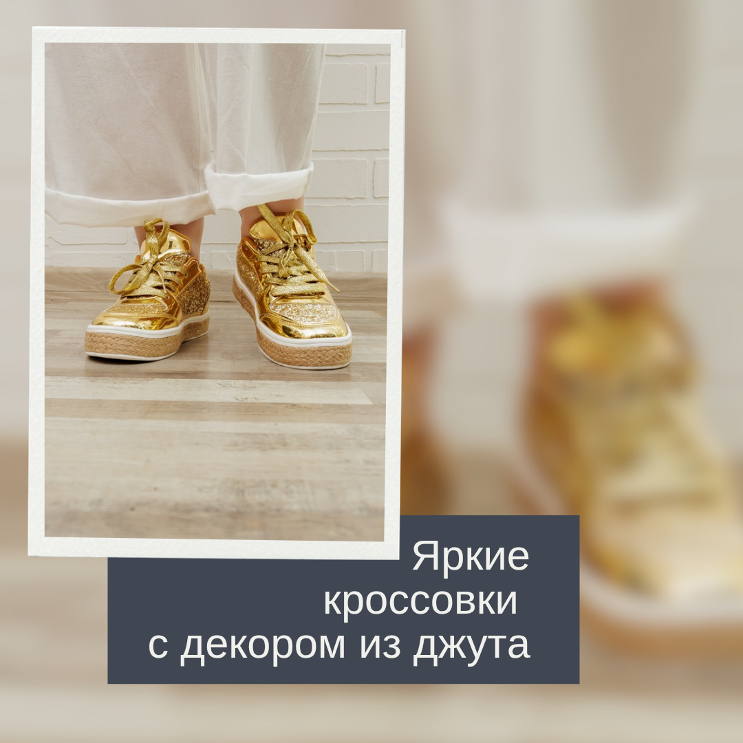 Сегодня расскажу про яркие золотые кроссовки с джутовым декором.