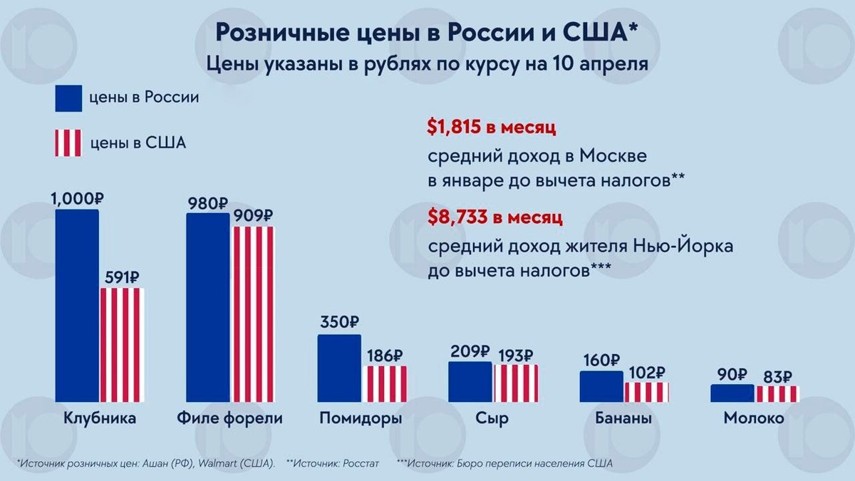 В России продукты дороже, чем в США — несмотря на зарплаты которые в 4 раза ниже