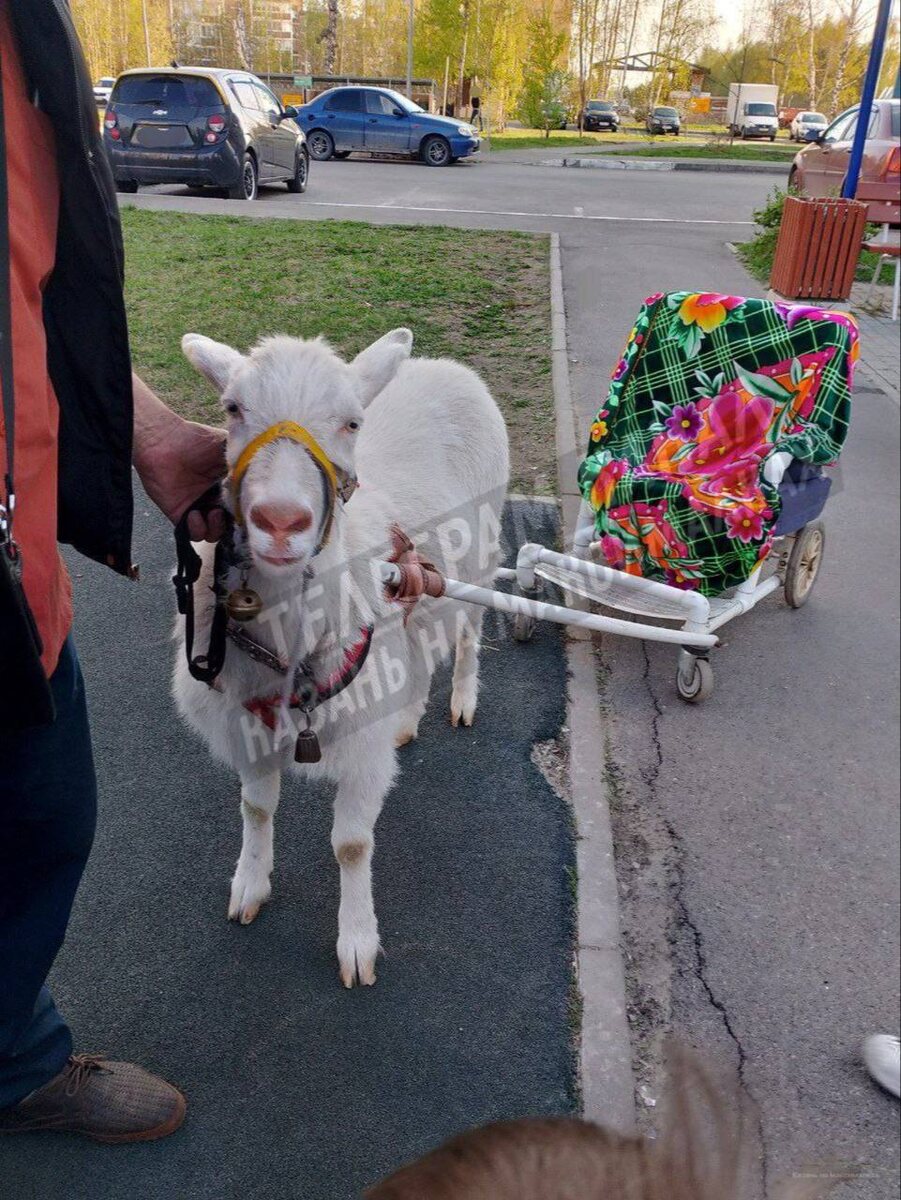 Сегодня дедушку с белым козликом заметили на Андрея Адо. Пенсионер абсолютно бесплатно катал всех желающих детей на повозке.