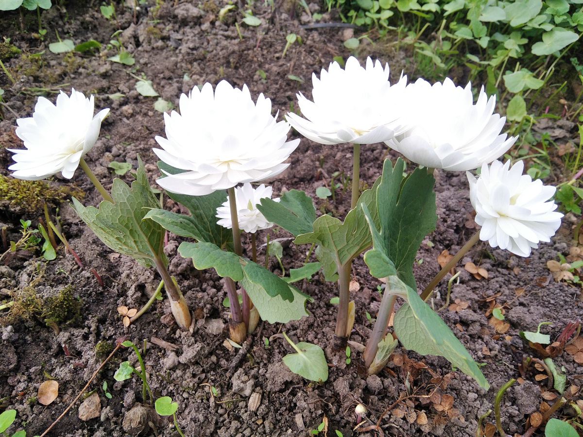 А всё остальное ищите - и найдёте! Вон сколько у меня нового цветущего нашлось после необыкновенно тёплых выходных. Сангвинария канадская махровая Про нее я отдельно напишу. Это восторг! Адонис весенний Бутонов еще много. Гиацинты Тюльпаны Прострел Морозники Белый морозник меня слегка разочаровал. Я ожидала, что цветки будут как в прошлом году. А они просто бело-зеленые, неинтересные. Куда делись веснушки?! Бордовый морозник хорош, но смотрит вниз. А вот этот цветок пришлось гуглить. В прошлом году я соорудила подпорную стенку и посеяла на неё всяких почвопокровников. Одно растение через год зацвело, но я уже успела забыть, что сажала. Оказалось - обриета. Форзиция вся в цветках А завтра, я уверена, еще что-нибудь новое расцветет!