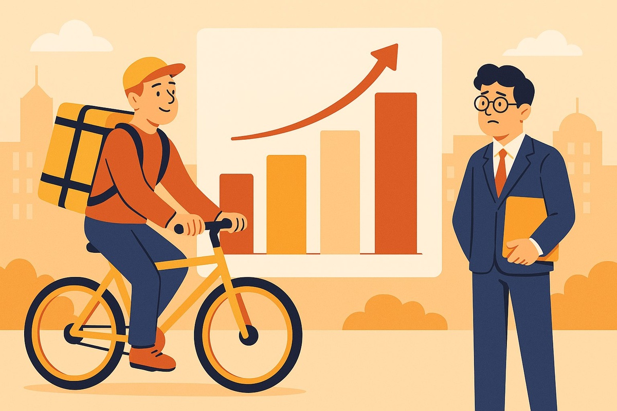 Средняя зарплата курьеров в Москве за год выросла на 37% и достигла 125 000 ₽. Это на 14% больше, чем у многих специалистов с высшим образованием. В пиковые месяцы (декабрь — март) доход доходит до 130 000 ₽. Летом спрос на доставку снова пойдёт вверх.