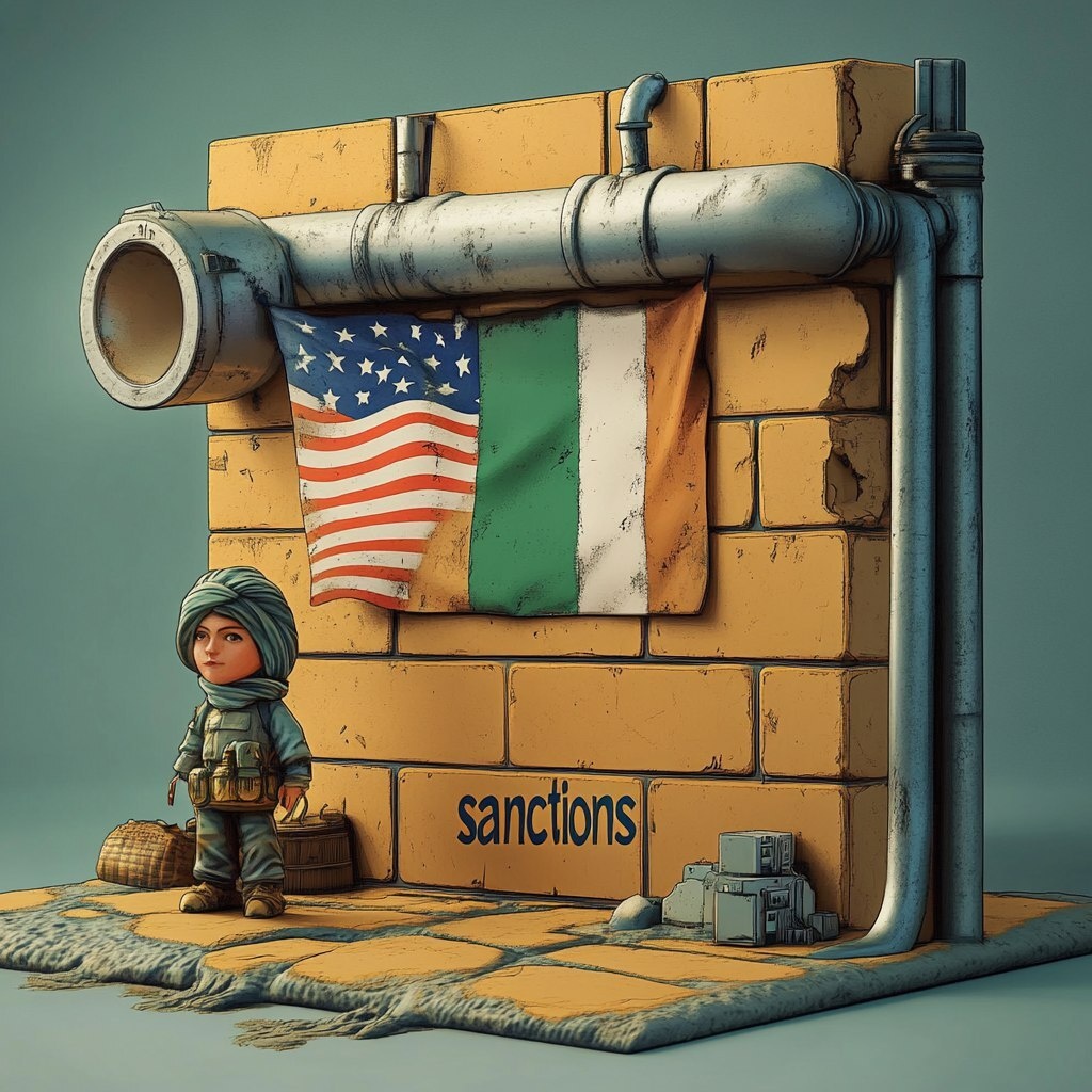 Создано на основе запроса: VIDEO GAME STYLE, 3D render: the elements of the graphics, backgrounds are made in 3D style, with realistic lighting and soft shadows. Clean and smooth design: shapes are rounded, color transitions are soft, without harsh textures. High readability: contrasting colors STYLE 3D, 2D , DETAILIZED , MAKE A NEGOTIATED PIPE OF (NOT THE IRAN FLAG, LIKE THE FLAG ON IRAN) ON HERE LAYS A BIG CURPY BELOW HER. On the brick is a large text "sanctions". AND THE BRICK IS THE COLOR OF THE AMERICAN FLAG. --- Автоперевод: Стиль видеоигр, 3D рендер: элементы графики, фон изготовлены в 3D -стиле, с реалистичным освещением и мягкими тени. Как тебе эта иллюстрация? 🤔 https://dzen.ru/id/65c0c65c86e4f837c27b24d7 #ИИ #AI #нейросеть #midjourney #art
