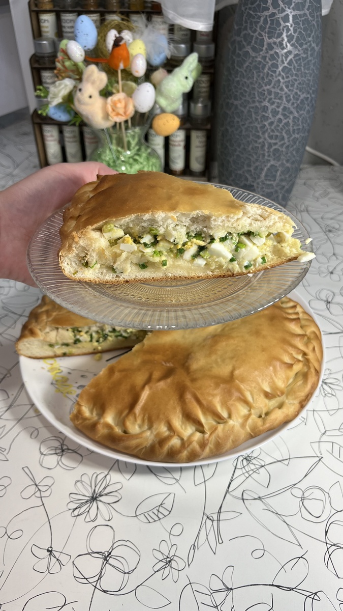 Пасха позади, а варёные яйца так и остались? Давайте приготовим уютный, душистый пирог с луком и яйцами — нежное тесто, ароматная начинка, а в результате — настоящая домашняя вкуснятина! Ингредиенты: Для теста: - 500 мл молока (комнатной температуры) - 11 г сухих дрожжей - 2 ст. л. сахара - 1 ч. л. соли - 100 г сливочного масла (растопленного) - ~900-950 г муки (пшеничной) - 1 ст. л. растительного масла (для работы с тестом) Для начинки: - 6 отварных яиц - 100 г зелёного лука - 100 г сливочного масла (растопленного) - Соль по вкусу 1. Готовим тесто: В тёплом молоке растворяем дрожжи, сахар и соль. Добавляем растопленное сливочное масло, перемешиваем. Постепенно вводим муку, вымешивая мягкое, эластичное тесто. Если нужно — смазываем стол растительным маслом, чтобы тесто не липло. Замешиваем 7–10 минут, затем убираем в миску, накрываем и оставляем на час в тёплом месте. 2. Готовим начинку: Зелёный лук мелко режем, яйца нарезаем кубиком. Смешиваем