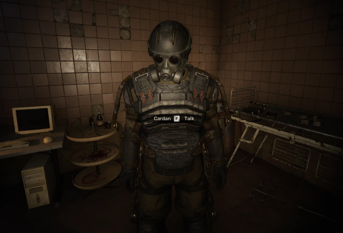 Кардан появляется в Сталкер 2 в комнате Двупалова, но никаких диалогов с ним нет. Дело в том, что Кардан - вырезанный персонаж (речь о физическом присутствии персонажа, а не упоминаниях в тех же аудиологах). Которого к релизу недовырезали (поправили ли патчами его появление - кто знает). Помните момент, когда на костюм надо установить "Подавитель" у техников? Изначально этот апгрейд тут же ставил Кардан. Кардан всё ещё вспоминал Шутника и Баржу: "Кардан: - Да я ж тогда говорил Шутнику, ну куда ты лезешь, ёп твою мать, куда? О6*е*ёшься! Нет, полез! Дурак.