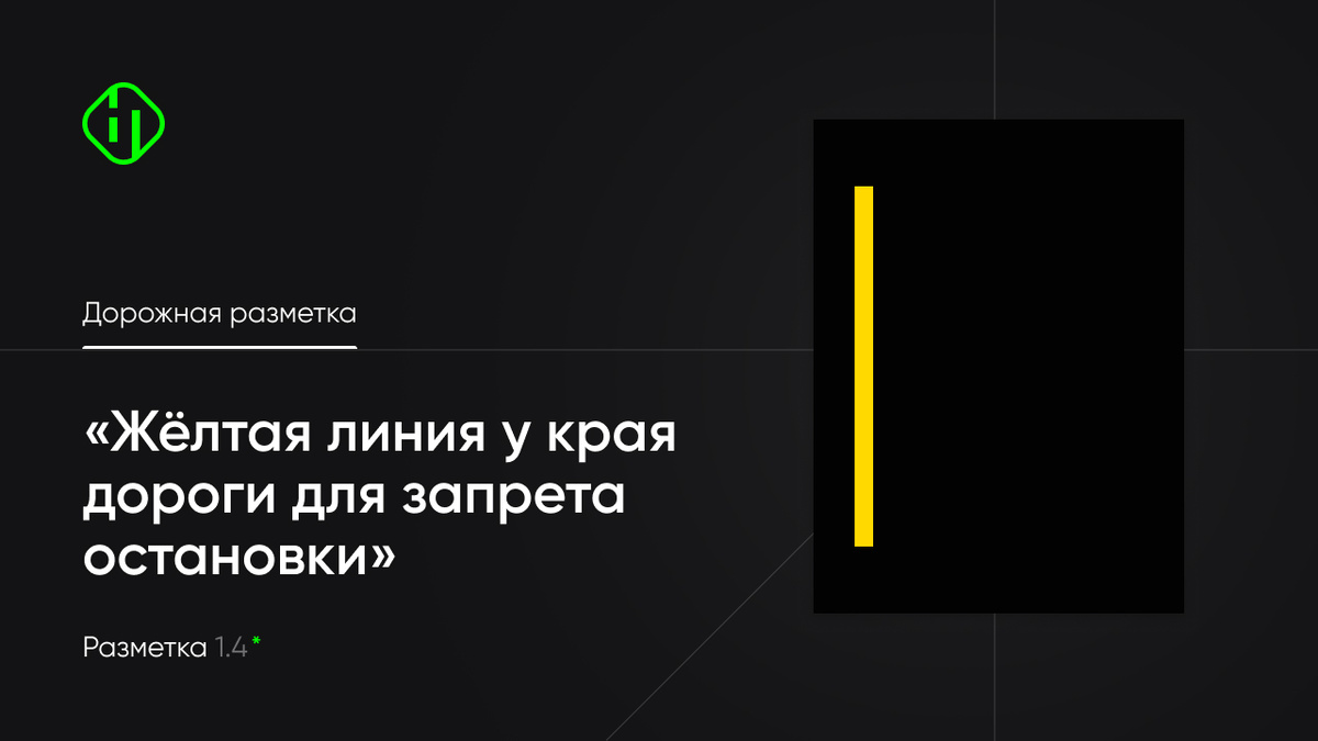 «Сэр, ты был близок, но нет. Тебе придется держать свой путь дальше». И эта разметка не дизайнерская прихоть и не арт-объект от ЖКХ. Это официальное обозначение «СТОП! Здесь парковка запрещена. Даже если тебе очень-очень надо всего на 5 минуточек.» Это сплошная линия желтого цвета у края дороги/проезжей части или по верху бордюра/тротуару. Её миссия — не дать тебе остановиться там, где этого делать нельзя ни при каких обстоятельствах. Но есть нюанс. Она может появиться: Сама по себе (автономная сила зла); Или в рядом со знаком №3.27 «Остановка запрещена» — тогда их дуэт особенно убедителен. Понял, да? Тут нельзя просто «высадить бабушку», «забежать на две минуты» или «прокинуть фары в телегу». Разметка 1.4 как строгая мама: предупреждает — и наказывает, если не слуш