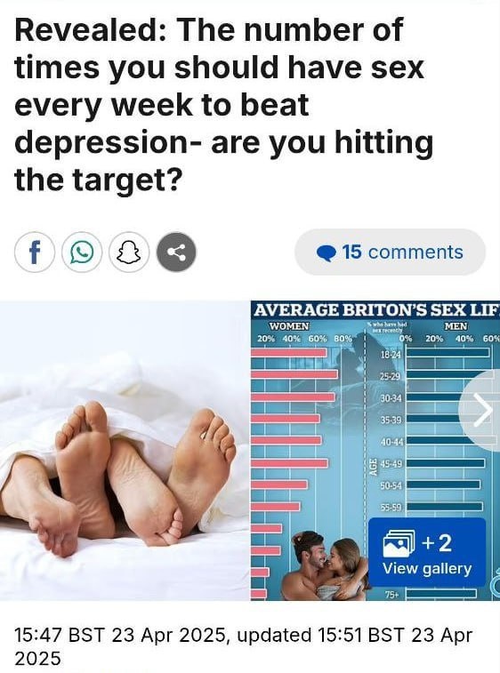 ⚡️ Учёные доказали: регулярный секс снижает риск депрессии на 24