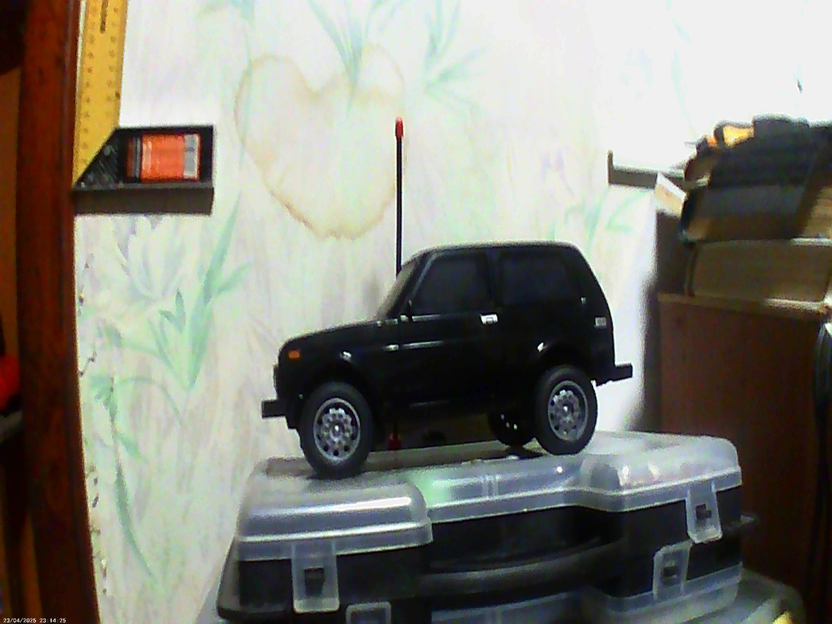 Пришла "Нива"...Масштаб - 1:16. Радиоуправляема. Но это - простая игрушка, с которой предстоит масса работы. Начать с того, что она - ЗАДНЕПРИВОДНАЯ!!! Я даже прифигел сперва, а потом подумал : "-Дэн, блин, какого хрена? Чего ты ждал от игрушки ценой в 1,5 тысячи?" Фары у неё горят только тогда, когда она едет. Вперед. При движении задним ходом - не горят. Днище предстоит всё искромсать, чтобы установить нормальный моторчик с коробкой передач. Придётся заказывать мосты от машинки WPL B24 (ГАЗ-66) - передний и задний. В принципе, сами "потроха" от мостов у меня есть, но нету корпусов для них. Кроме мостов закажу амортизаторы. Реактивные тяги, которые держат задний мост, сделаю сам. Возможно (если не лень будет) и амортизаторы сам сделаю. Колёса тут...нууу...как бы "колёса". Придётся менять на нормальные диски с настоящей резиной... "Стекла" предстоит снять и остеклить модель заново - прозрачные окна будут. И в самом конце - покрасить в зелёный цвет, сделать экспедиционный багажник с "лю