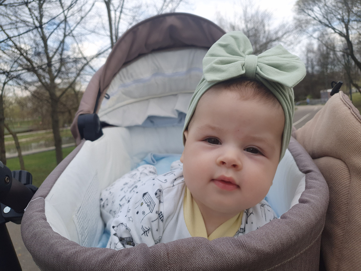 Агата пока не села, поэтому перевожу коляску в лежачее положение, так и гуляем. Лежачая люлька у меня только на коляске-танке, которую совсем неудобно брать в поездки, уж очень она тяжелая, а хотелось бы на майские съездить всем вместе куда-нибудь погулять. Поэтому для поездок взяли лёгкую сидячую, а дома мы гуляем в люльке, но на бодрствование я кладу Агату на живот, ей нравится все обозревать, а не смотреть в небо, заодно тренирует мышцы.