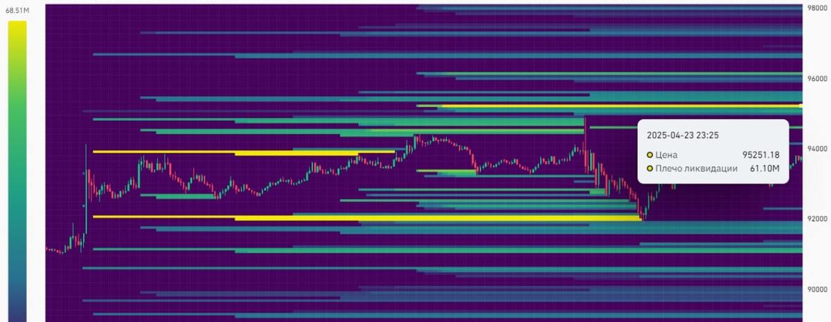 По #BTC ликвидность есть еще на уровне 95251, думаю за ней сходим, а уже потом пойдем ниже хорошая ликвидность находится на уровне 89270 и