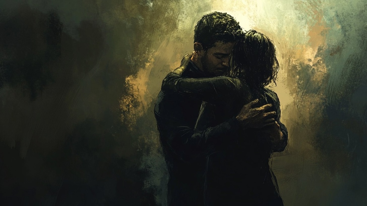 Создано на основе запроса: man character age 30 ,man and woman are hugging high qulity , Alvaro Castagnet style picture , sketch , dark