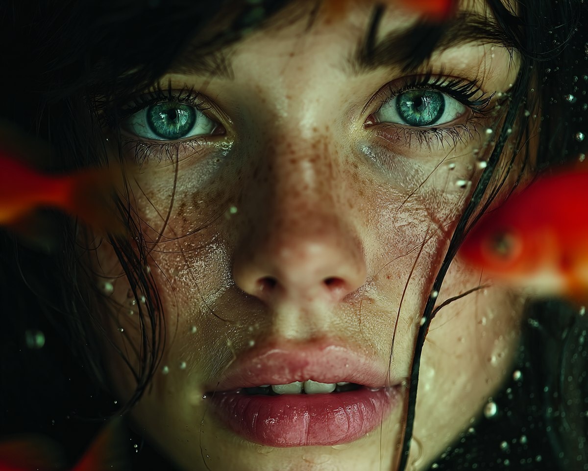 Создано на основе запроса: A beautiful woman with blue eyes and long black hair is surrounded by fish in the water, in the style of Photorealism, in the style of Hyperrealistic, cinematic lighting, close-up portrait, reflection photography. --- Автоперевод: Красивая женщина с голубыми глазами и длинными черными волосами окружена рыбой в воде, в стиле фотореализма, в стиле гиперреалистического, кинематографического освещения, портрета крупным планом, отражением. Как тебе эта иллюстрация? 🤔 https://dzen.ru/id/65c0c65c86e4f837c27b24d7 #ИИ #AI #нейросеть #midjourney #art