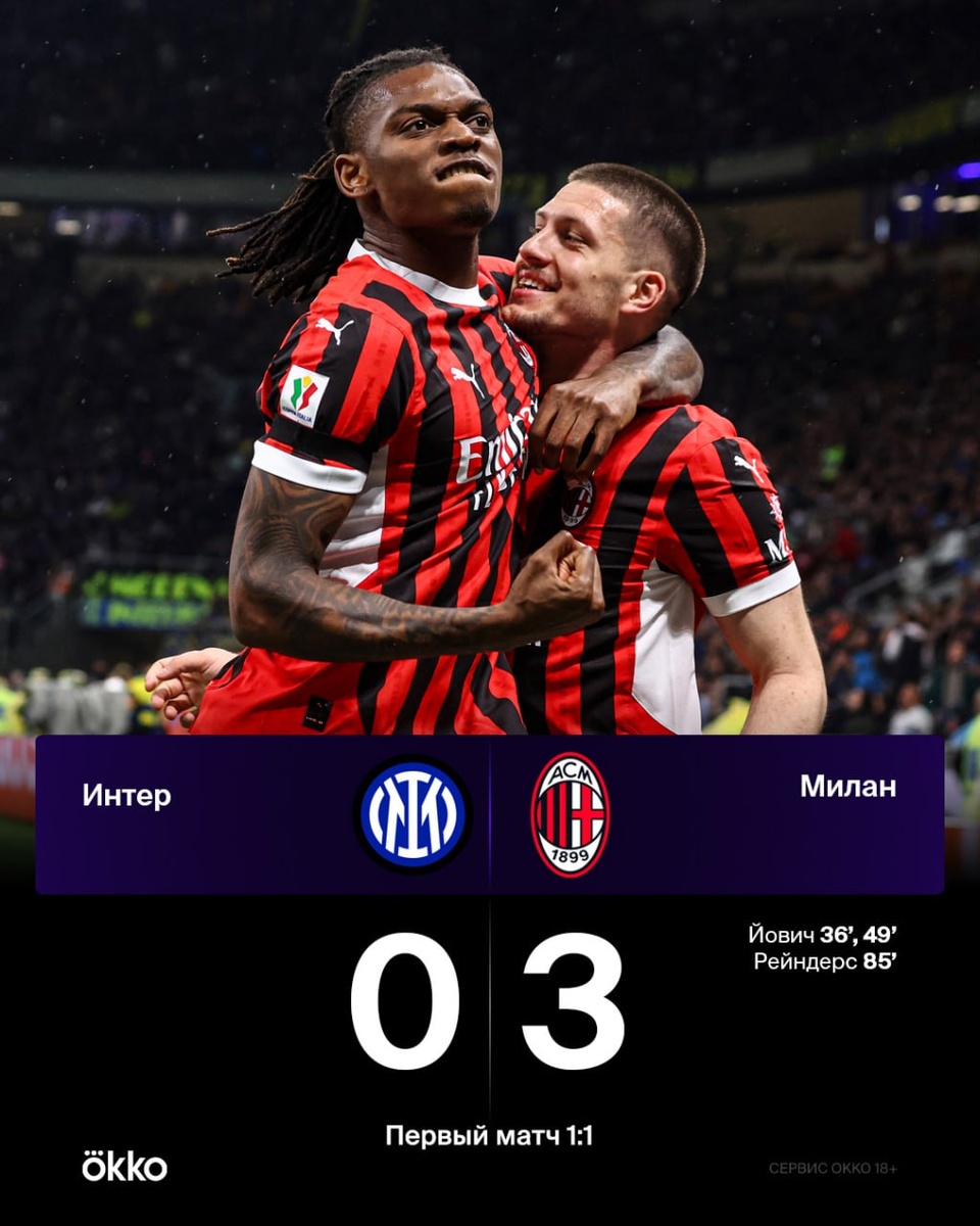 Эту песню сегодня будет петь вся красно-черная половина Милана. «Россонери» — в финале Кубка Италии. Йович и Рейндерс сделали красиво! 😎