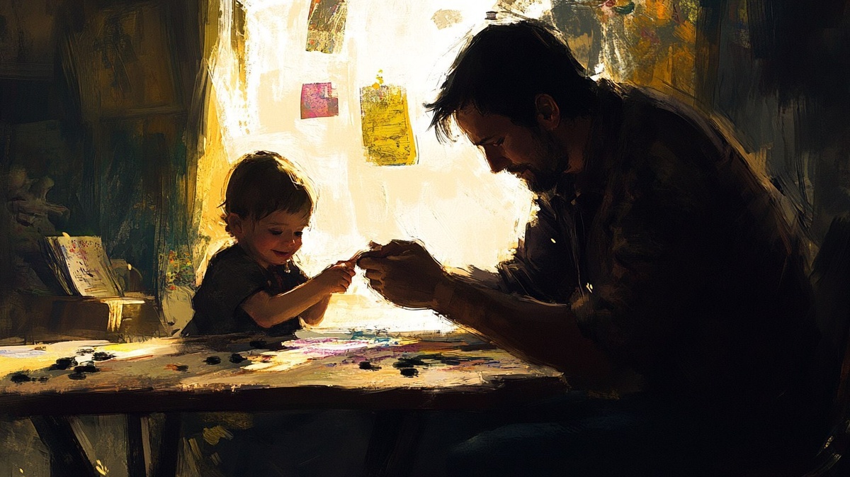 Создано на основе запроса: man character age 30 , man is playing with child tableplay high qulity , Alvaro Castagnet style picture , sketch
