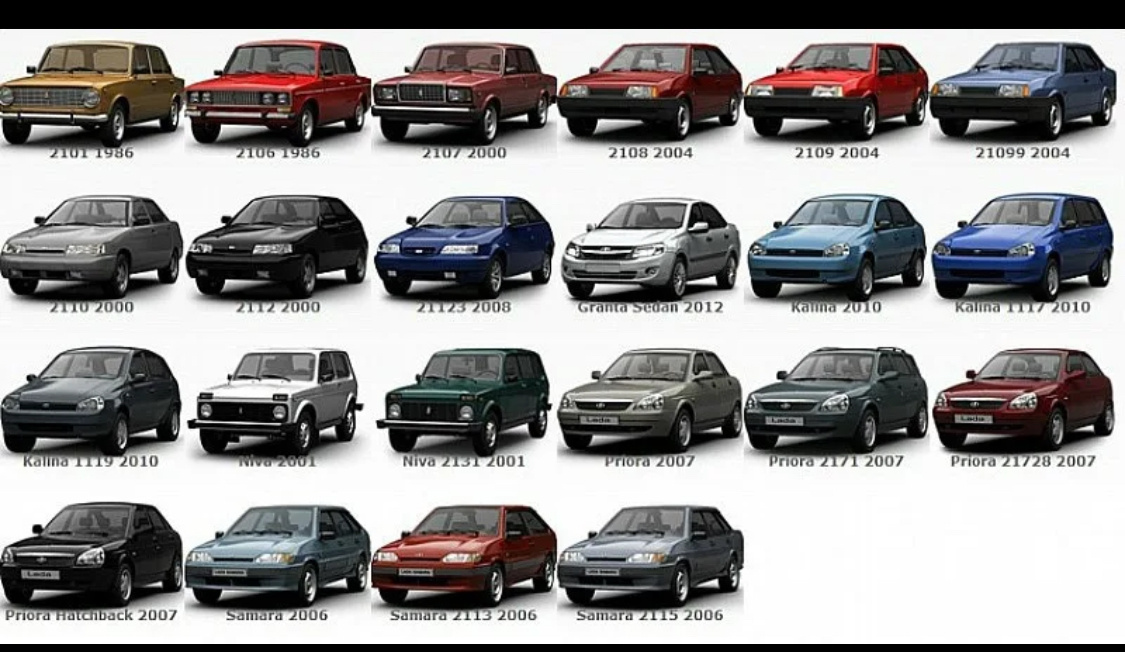 Некоторые модели автомобилей ВАЗ с названиями и годами выпуска: