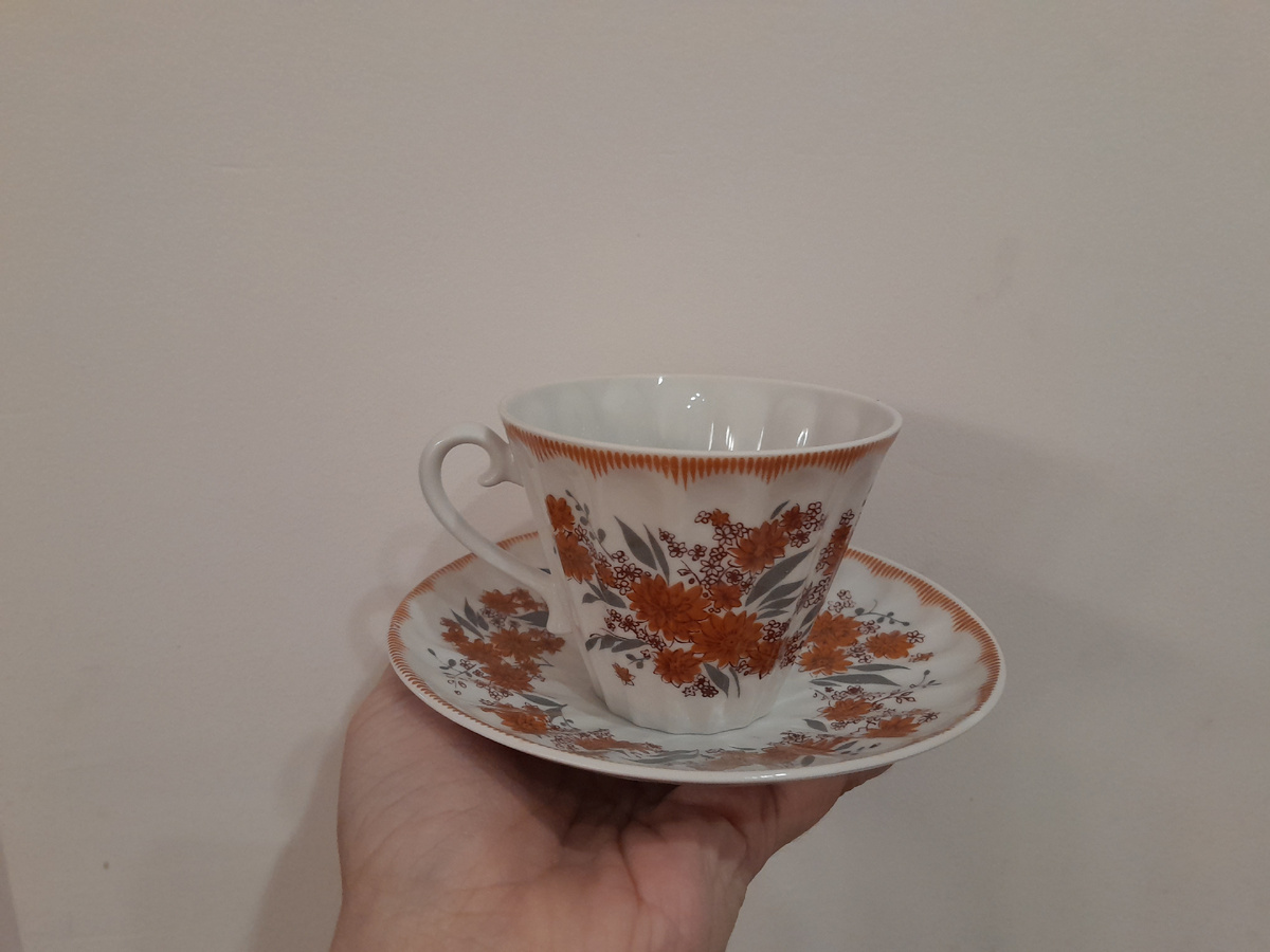Помните, некоторое время назад я рассказывала, что мы несколько раз покупали сервизы у одного и того же продавца? И пару раз всё доехало целым и невредимым, а потом два раза подряд приезжал бой. Не совсем всё битое, но отдельные элементы. А на почте проверить огромную коробку сложно. Представляете, если весь сервиз разворачивать? Никаких 15 минут не хватит. Вот и проверялись отдельные элементы, а дома обнаруживалось битьё. Оба раза мы писали продавцу. В итоге после второго фиаско он предложил нам компенсировать 1000 рублей. Мы предложили оставить их как скидку на следующий заказ. Чем в итоге и воспользовались. Купили несколько чайных пар. Себестоимость каждой не считала с учётом скидки, но в среднем получилось где-то 450 рублей за пару. И (ура!) всё доехало целым🎉. Покажу, что купили. Две пары ЛФЗ "Осенние цветы", форма лучистая. Взяли бы больше, но их только две и оставалось. Обе уже проданы. Дальше. Kahla. Осенний вечер. Тоже взяли две пары. Хорошо, что не взяли больше, что-то он