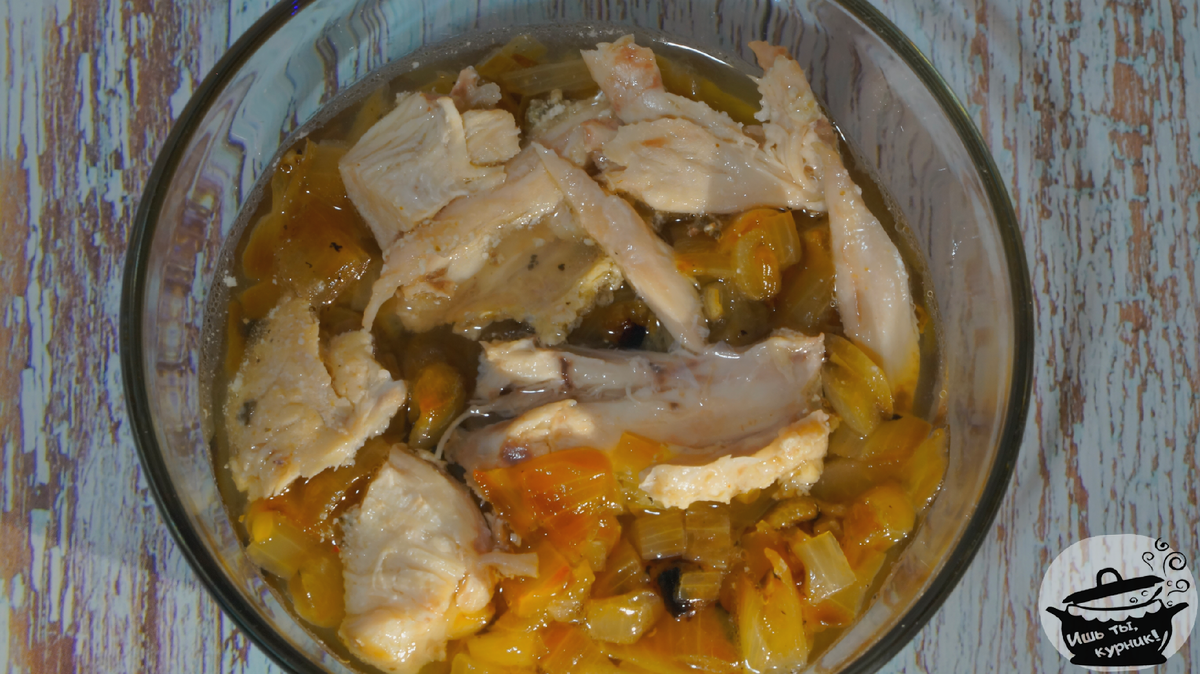 Ингредиенты: · лук - 5 шт.; · базилик - 1/2 пучка; · грудинка копченая - 150 гр.; · гвоздика - 4 шт.; · жареная курица (филе)- 350 гр. Приготовление: лук порезать, немного спассеровать. Базилик порезать. В грудинку вставить гвоздику, в небольшом количестве бульона отварить лук, базилик и грудинку до готовности. Перед подачей порционно добавить обжаренную курицу. Приятного аппетита!