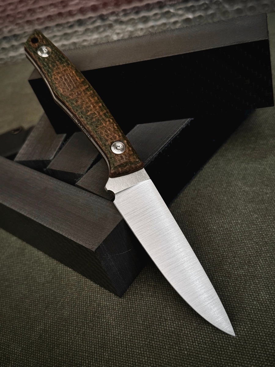 Приятный и легкий фикс «Заноза» в размере M для городского пользования. Это небольшой и маневренный нож с агрессивным резом. Клинок выполнен из стали Х90, а на рукояти накладки из микарты. В комплекте ножны из кайдекса. Длина ножа: 180 мм Длина клинка: 87 мм Толщина обуха: 3.2 мм. ‼️Вести диалог только с @burlax1