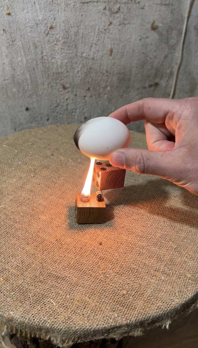 Эта краска не дает блики, а за счет поглощающего свет, дает тем самым ту самую черноту! Способ получения краски на самом деле очень простой! Как пример я взял свою дизайнерскую зажигалку и яйцо, при горении выделяется сажа, так сказать этот углерод, это и есть основа этой краски! Вы только посмотрите уже на яйце можно заметить, что это очень черная основа. А если начистить достаточное количество сажи и смешать с подходящим, ну что то вроде олифы, то можно получить черную черную краску! Как вам такое?