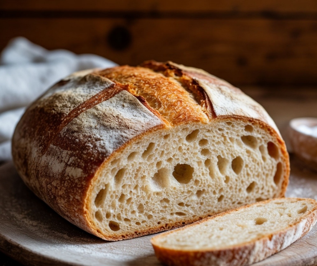 Этот рецепт проще предыдущего и подходит для тех, кто только начинает печь хлеб на закваске. Он не требует точных измерений и фокусируется на ощущениях. Что нам понадобится: Закваска: Примерно 100-150 грамм активной, пузырчатой закваски (та, которая хорошо поднялась). Если закваски меньше, хлеб получится меньше. Мука: 500 грамм пшеничной хлебопекарной муки (можно добавить немного ржаной или цельнозерновой для вкуса, но не больше 100 грамм). Вода: Примерно 300-350 мл тёплой воды (примерно как температура тела). Количество воды может варьироваться в зависимости от муки. Соль: 10-15 грамм (примерно 1-1,5 чайных ложек с горкой). Как печь: 1. Смешиваем: В большой миске смешиваем закваску и воду. Размешиваем до однородности. Добавляем примерно половину муки и перемешиваем до исчезновения комочков. 2. Добавляем муку и соль: Постепенно добавляем оставшуюся муку и соль. Мешаем ложкой или руками, пока тесто станет достаточно густым, чтобы отставать от стенок миски. Тесто должно быть немног